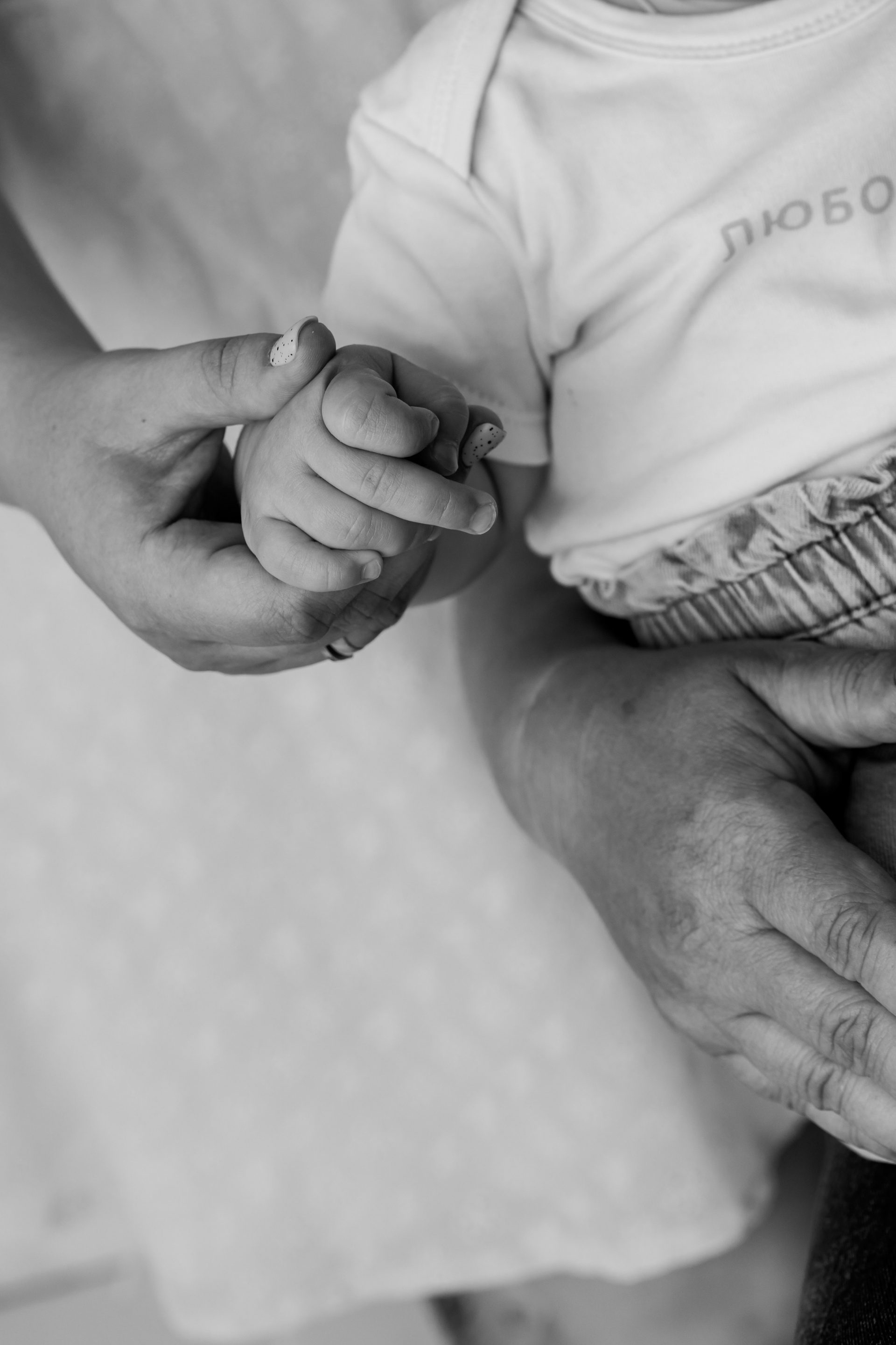 - Кадры с родителями на ручках, постельном